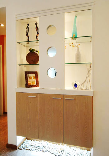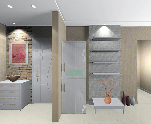 7、在玄關處擺放的家具要以不影響主人的出入為原則。如果居室面積偏小,可以利用低柜、鞋柜等家具擴大儲物空間。還可通過改裝家具來達到一舉兩得的效果,如把落地式家具改成懸掛的陳列架,或把低柜做成敞開式掛衣柜,增加實用性的同時又節(jié)省了空間。