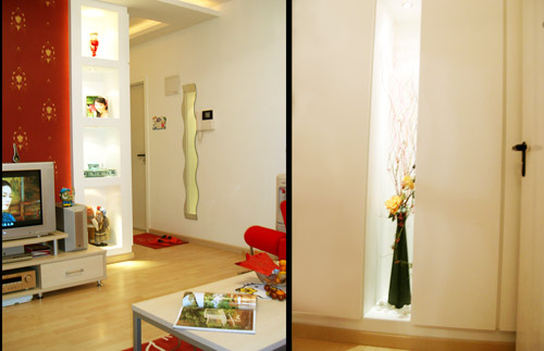 3. 客廳玄關的間隔不宜太高或太低,而要適中。一般以兩米的高度最為適宜,下面可以做柜子之類,高八十八公分左右。上面可用博古架之類的,若是客廳玄關的問隔太高,處身其中便會有壓迫感。風水學上認為 ,客廳玄關如果設置得太高,就會完全阻擋了屋外之氣,從而隔斷了來自大門的新鮮空氣或生氣,是非常不可取的。而太低 ,則沒有效果 ,無論在風水方面以及實用方面均不妥當 。
