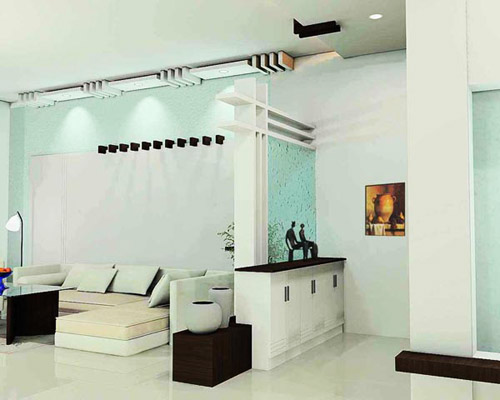 1. 客廳玄關的間隔應以下面實心,防止外泄,上面以通透為主。因此可以用通透的磨砂玻璃或者空心的博古架之類的。