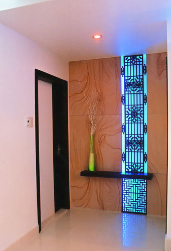 6、玄關的墻面最好以中性偏暖的色調(diào),能給人一種柔和、舒適之感,讓人很快忘掉外界環(huán)境的紛亂,體味到家的溫馨。