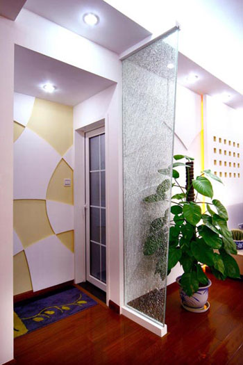在家居風(fēng)水中,中國的傳統(tǒng)大宅院入門之處均設(shè)有大型玄關(guān),而現(xiàn)代都市的住宅普遍面積狹窄,若再設(shè)置傳統(tǒng)的大型玄關(guān),則明顯會(huì)感覺空間局促,難以騰挪。所以折衷的辦法是用玻璃屏風(fēng)來作間隔,這樣既可防止外氣從大門直沖入客廳,同時(shí)也可令狹窄的玄關(guān)不顯得太逼仄。