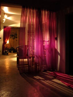 隔斷可以分為兩種:墻面,屏風,立柜等位置固定的是一種,這種隔斷在空間寬敞的房間里更適用,另一種形式更加豐富活潑:紗簾、幔帳、珠簾等等。它們的特點是幾乎不占空間,位置可以移動,透光透氣而不影響房間的通透感。這種隔而不斷的中式風味更加優(yōu)雅綿長,尤其適合主人為女性的小戶型。