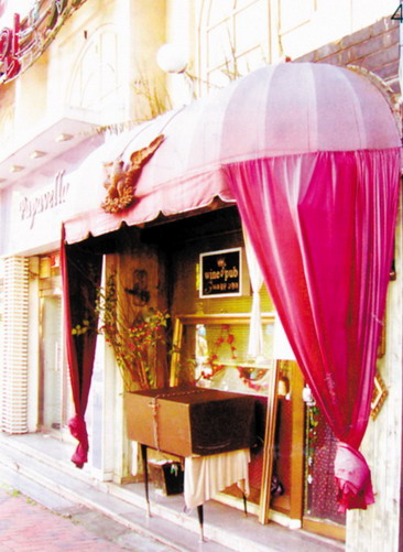 ▲小小的一家街店,用柔美的玫瑰紫色幔帳渲染浪漫情調(diào)。