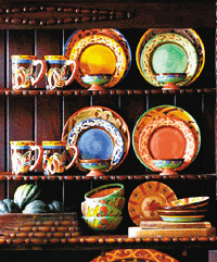 ▲傳統(tǒng)艷麗的顏色用在碗、碟這些器皿上,使器物成為裝飾。