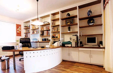 和充滿商機(jī)的辦公室相比,個(gè)人工作室顯得更加放松、簡潔、隨意,其最大的特點(diǎn),就是能充分發(fā)揮辦公自動(dòng)化的靈活性。在有限的空間內(nèi),將電腦、打印機(jī)、復(fù)印機(jī)、傳真機(jī)等辦公設(shè)備進(jìn)行合理的布局,結(jié)合電腦桌的合理性與靈活性進(jìn)行巧妙擺放,以方便自己維護(hù)藏書、辦公、閱讀等興趣愛好。對于積累資料較多的人來說,多功能的暗格、活動(dòng)拉板十分實(shí)用,應(yīng)該充分利用各個(gè)角落和空當(dāng),在里面安置分門別類的書籍與資料,工作的時(shí)候就可以信手拈來了。