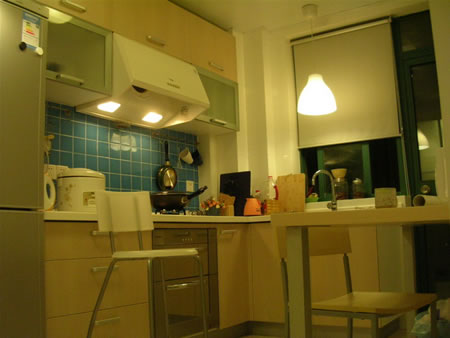 看清楚了,原來(lái)這里面是一個(gè)衛(wèi)生間,據(jù)“鄉(xiāng)村之戀”講,原來(lái)這里是一面墻,光線和結(jié)構(gòu)都非常不好,于是充分發(fā)揮他的聰明才智,又是請(qǐng)教師傅,又是上網(wǎng)查資料,方案做了一個(gè)又一個(gè),最后決定把墻做成了窗欞的樣子,這樣既好看又光線通透,這實(shí)在是太有創(chuàng)意了,廣大正奮戰(zhàn)的裝修一線的網(wǎng)友不妨偷學(xué)這一招,絕對(duì)有意想不到的效果。當(dāng)然,這也是鄉(xiāng)村之戀裝得最滿意的,還叫我們多拍一點(diǎn)照片呢!