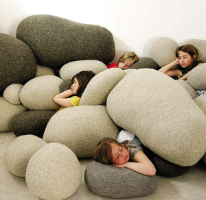 設(shè)計(jì)師Katarina von Wachenfeldt則設(shè)計(jì)了一款名叫“石頭”的枕頭,跟法國(guó)設(shè)計(jì)師Stéphanie Marin設(shè)計(jì)的“Living stone”(活石)抱枕,都從石頭那里獲得了靈感——這真是奇怪,最柔軟的枕頭偏偏要做成最堅(jiān)硬的石頭的形狀,這種反差,體現(xiàn)了西方式的幽默?;蛟S設(shè)計(jì)師們認(rèn)為,抱著石頭入睡,更能讓人們體會(huì)到夢(mèng)境的柔軟吧。有人說(shuō),枕著石頭睡覺(jué)是人類最原始的睡眠姿態(tài),如果真是這樣,那么“Living stone”就可以說(shuō)是對(duì)枕頭的復(fù)古了。