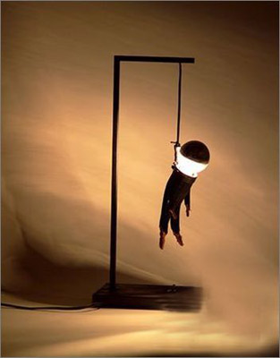 把臺(tái)燈做成一個(gè)上吊的小人。喜歡恐怖片的人,不妨試試