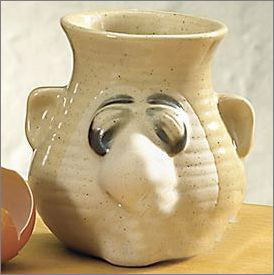 它由陶瓷制成,不過(guò)外形上看上去很特別,被做成了一個(gè)大鼻子先生的樣子。這也正是其創(chuàng)意的獨(dú)到之處,你只要將蛋殼敲碎,將雞蛋放進(jìn)這個(gè)容器里面,然后慢慢傾斜,它就能夠讓蛋清流出,留住蛋黃。不過(guò),當(dāng)?shù)扒鍙乃拇蟊亲永锩媪鞒鰜?lái)時(shí),就像是一股股的鼻涕一樣……