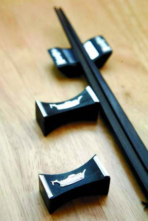 泰國(guó)的銀飾一向比較出名,這款筷托兩端有泰銀雕的人物造型,中間的凹槽部分則是銀片設(shè)計(jì),既有裝飾作用也非常實(shí)用,清洗起來也很方便。圖案多為泰國(guó)當(dāng)?shù)氐某S脠D案,代表了吉祥的寓意,比如船代表了一帆風(fēng)順。
