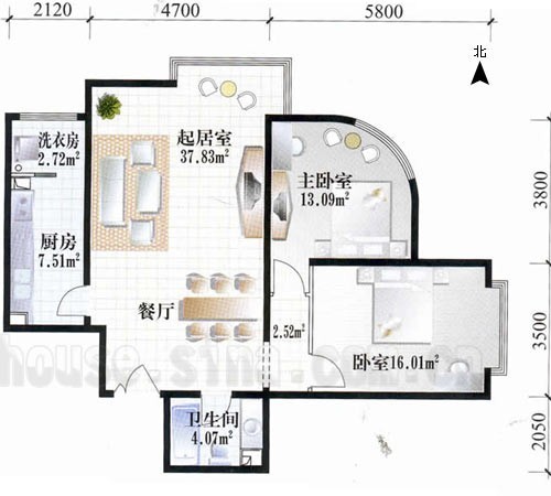 1、次臥面積反而比主臥面積大,且主臥朝北沒有日照,體現(xiàn)不出應(yīng)有的規(guī)格。