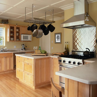 民以食為天,廚房向來在家居生活中占據(jù)著非常重要的地位。由于飲食習(xí)慣不同,中國傳統(tǒng)廚房內(nèi)往往油煙籠罩,人們裝修時(shí)不得不使用耐臟的材質(zhì),在設(shè)計(jì)上也乏善可陳,只求容易清潔;而西方人做飯很簡單,也就沒有這樣的約束,廚房做得很個(gè)性、很漂亮。