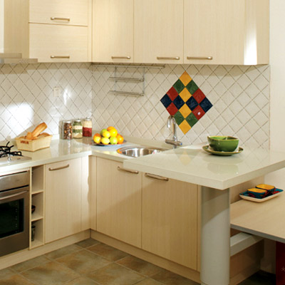概要: 戶型再小,廚房也不可少。所以,如何在小空間里打造出好用好看的廚房,真的需要動動腦筋?! ι峡臻g多利用小面積廚房一方面要注意功能完備,更要注意最大限度地提高空間利用率,所以盡量把能放起來的東西都收進去,讓臺面顯得清爽。上柜和下柜之間的空間可以設(shè)計一幅墻面擱架,把零七八碎的盤、杯等全部收納。