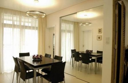 南邊的窗戶一年四季都有充足的光線,是房間最重要的自然光來源,能讓屋內(nèi)呈現(xiàn)淡雅的金黃色調(diào)。但是,和暖的自然光含有大量的熱量和紫外線,在炎熱的夏季,這樣的陽光顯得有些多余。因此,目前比較流行的日夜簾是一個(gè)不錯(cuò)的選擇。白天的時(shí)候,展開上面的簾,不僅能透光,將強(qiáng)烈的日光轉(zhuǎn)變成柔和的光線,還能觀賞到外面的景色;拉起下面的簾,強(qiáng)遮光性和強(qiáng)隱秘性讓主人在白天也能享受到漆黑夜晚的寧靜,滿足全天的光線環(huán)境。