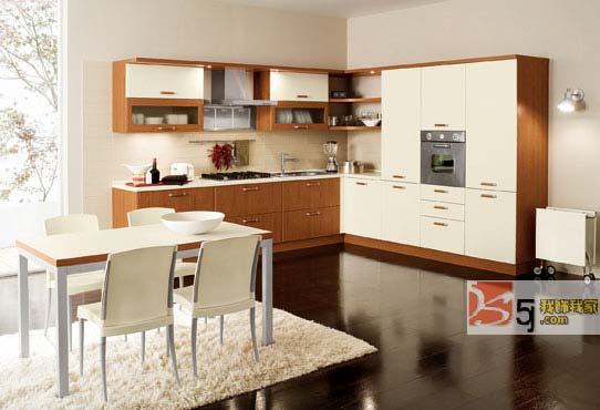 所謂“通透”,是指廚房與餐廳合并。這種情況就餐時(shí)上菜快速簡(jiǎn)便,能充分利用空間,較為實(shí)用。只是需要注意,不能使廚房的烹飪活動(dòng)受到干擾,也不能破壞進(jìn)餐的氣氛。所以要盡量使廚房和餐廳有自然的隔斷或使餐桌布置遠(yuǎn)離廚具,餐桌上方的照明燈具應(yīng)該突出一種隱形的分隔感。