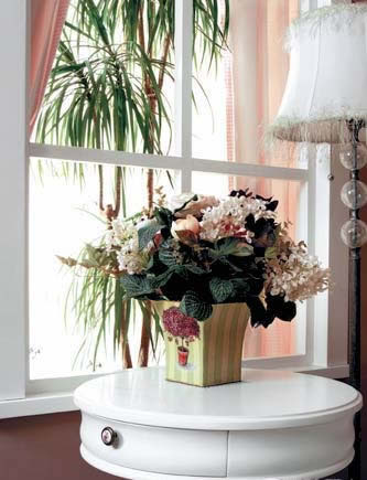 概要: 窗下的空間雖只是家中小小一隅,細(xì)心裝扮,也能演繹出不同風(fēng)景。生活源于細(xì)節(jié),而細(xì)節(jié)源于用心。布置窗的時(shí)候,不僅要注意色彩和諧,也要講究風(fēng)格的統(tǒng)一。梳妝臺(tái)上的手繪玫瑰圖案跟粉色條紋棉布窗簾在色彩上形成和諧呼應(yīng),手繪瓷盤典雅而不失活潑,為點(diǎn)睛之筆,烘托出一派英式鄉(xiāng)村風(fēng)格,與室內(nèi)整體格調(diào)完美統(tǒng)一。餐廳的窗下,最適合布置成這樣隨意溫馨的小景。