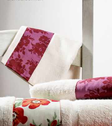 春天般純美和恬靜的粉底上描繪著暗紅色小花的,是浪漫女主人的毛巾和手袋。清麗的小花讓雅致的居室不乏柔和喜悅的輕松感。