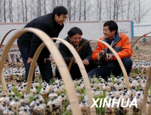 資料圖片:2009年3月24日,齊心征(右)向魚臺(tái)縣石集村返鄉(xiāng)農(nóng)民工史中峰(中)以及從江蘇睢寧縣遠(yuǎn)道而來學(xué)技術(shù)的農(nóng)民高宏光講解越冬地栽式黑木耳的培養(yǎng)技術(shù)。齊新征1998年從山東電力高等學(xué)校畢業(yè)后自主創(chuàng)業(yè),經(jīng)過10年摸索,逐漸掌握了食用菌基本栽培技術(shù)和管理方法。目前,他在家鄉(xiāng)山東省魚臺(tái)縣唐馬鄉(xiāng)創(chuàng)辦的濟(jì)寧億佳農(nóng)產(chǎn)品有限公司采取“公司+農(nóng)戶”模式,統(tǒng)一購(gòu)種、統(tǒng)一技術(shù)指導(dǎo)、統(tǒng)一回收、統(tǒng)一銷售,帶動(dòng)周邊農(nóng)戶和返鄉(xiāng)農(nóng)民工共走致富路。新華社記者尹棟遜攝