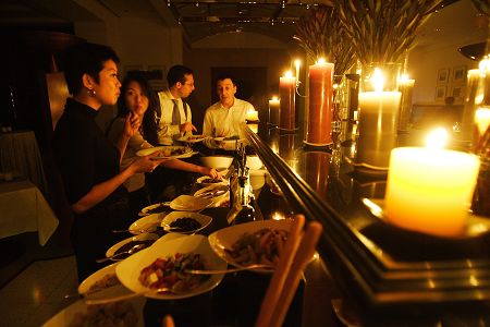 2008年3月29日,上海四季酒店餐廳內(nèi),客人在燭光下用餐。當(dāng)天,全球37家四季酒店響應(yīng)“地球一小時”熄燈活動。