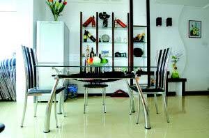 方案五在設(shè)計(jì)上突出之處是燈光的設(shè)計(jì)與燈飾選擇。在家居設(shè)計(jì)中燈光的運(yùn)用非常靈活。光與影的營(yíng)造下,家居增添上一份迷人的氣氛。餐廳的一角采用明亮燈飾,氣氛活躍。而客廳則以大小不一的射燈為主,令客廳環(huán)境顯得安詳而幽雅。燈光不僅是用于照明,同時(shí)也是家居的配角。俗話說,紅花也要綠葉扶。此方案中選用的臺(tái)燈燈座設(shè)計(jì)古樸大方,與整個(gè)家居裝飾風(fēng)格一致。
