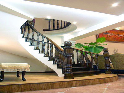 弧梯:是以一個(gè)典線連接樓上樓下,其美觀大方,行走舒適,沒有折梯的生硬,也沒有旋梯的不安全感,是最為理想的樓梯,但一定要有足夠的空間,才能達(dá)到最好的效果,是大復(fù)式與獨(dú)立別墅的首選。