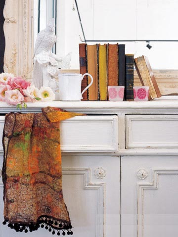 純潔的白色和淡雅的綠色,看似古舊的家具,正在勾勒居室此處的語調(diào)。但是,原本看似普通的居室一角,因為木椅復(fù)古的邊緣圖案,花盆精致的雕刻,以及屏風(fēng)周邊精巧的設(shè)計,開始變得與眾不同。在那些質(zhì)樸的表達(dá)方式中,細(xì)節(jié)可以改變風(fēng)景。