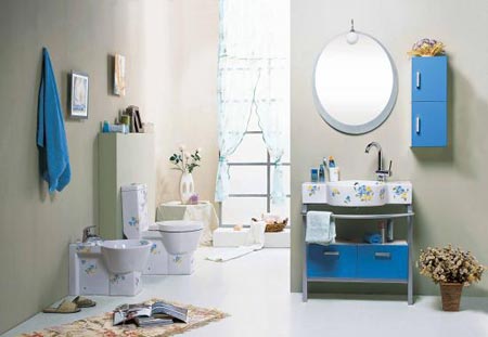 浴室中最理想的色調(diào)是粉色系,例如:粉紅、淡綠、淡藍及桃紅色等。其次則是奶油色系,或是一些中性色,如:黑色及白色。裝飾物及毛巾等配件則可選擇強烈的對比色系。