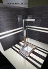 沒(méi)有花哨的設(shè)計(jì),無(wú)論是圓形還是方形都是規(guī)規(guī)矩矩,在黑白兩色間點(diǎn)綴經(jīng)典圖案的金屬瓷磚,硬朗的風(fēng)格讓衛(wèi)浴間也有了性別取向。
