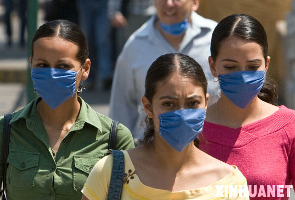 4月26日,幾名墨西哥城市民戴著口罩走在市中心的路上。當日,墨西哥城市長馬賽洛·埃布拉德宣布,該市在最近24小時內有5名豬流感疑似患者死亡,致使首都的豬流感疑似患者死亡總人數(shù)升至15人。墨西哥城市**臨時決定追加發(fā)放100萬只免費口罩。 新華社發(fā)(戴維攝)