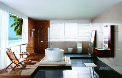 目前市場(chǎng)上的面盆主要有臺(tái)盆和柱盆兩種,二者在功能上沒有區(qū)別,只是在形式上存在差異。臺(tái)盆適用于開間較大的衛(wèi)生間,顯得莊重大氣;柱盆適用于布局緊湊的衛(wèi)生間,看上去精巧別致。浴缸的選擇傾向于壓克力缸,因?yàn)閴嚎肆π筒馁|(zhì)量輕,導(dǎo)熱率低,易清洗,手感好,設(shè)計(jì)更符合人體造型,但價(jià)格高于鋼板缸。