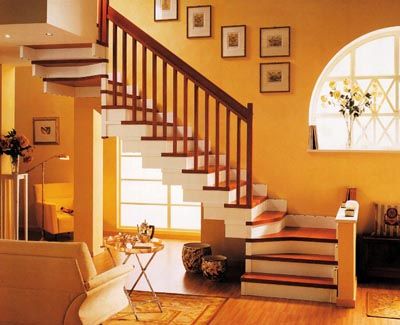 是以一個(gè)典線連接樓上樓下,其美觀大方,行走舒適,沒(méi)有折梯的生硬,也沒(méi)有旋梯的不安全感,是最為理想的樓梯,但一定要有足夠的空間,才能達(dá)到最好的效果,是大復(fù)式與獨(dú)立別墅的首選。
