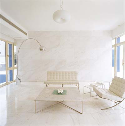 白色大理石的墻面與地面配以白色的家具成為后極簡的典范。