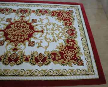 家居地毯底色及圖案的選擇。家居地毯的顏色一般有大紅、粉紅、駝色、橙色、墨綠、淺綠等,選擇地毯的底色應(yīng)與裝飾的色調(diào)協(xié)調(diào),一般不應(yīng)反差太大。地毯的圖案也是多種多樣,選擇時也應(yīng)與裝飾風格協(xié)調(diào)。一般歐示風格的裝飾可選擇宮廷“美術(shù)式”、“采花示”、等圖案的地毯,中示風格加紅木家具的裝飾則應(yīng)選擇“京式”、“京彩”圖案的地毯?! ?/P>