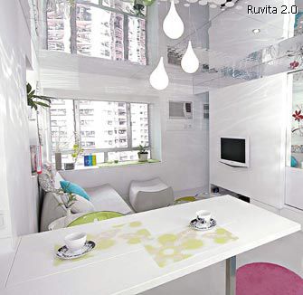 這間位于魚涌的單位,面積只有約520方尺,但在Joey的從新打造之下,這間以大自然為題的家居,放棄了采用一般人眼中的自然色:綠或啡,反而用上了簡(jiǎn)約時(shí)尚家居常用的純白和銀色:“這單位在重新設(shè)計(jì)之前,本來還有1個(gè)房間位于大窗位置,廳堂自然光極少。設(shè)計(jì)時(shí)除了將近窗的房間拆去,令廳堂面積更大,引進(jìn)更多天然光外,家居的主色亦以白色為主,天花及部分間隔活動(dòng)墻亦用上鏡面設(shè)計(jì),令全屋更光猛。”連地板都用上白色,是為了使室內(nèi)看來有所延伸,起擴(kuò)闊視覺空間之效。