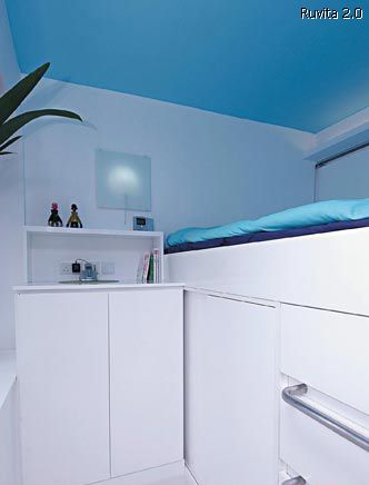 女兒睡房和主人房以趟門分隔,加高的地臺(tái)和睡床下方,有大量的儲(chǔ)物空間。