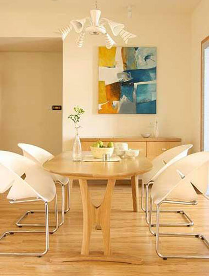一、獨(dú)立式餐廳 這種形式是最為理想的。一般對于餐廳的要求是便捷衛(wèi)生、安靜舒適,照明應(yīng)集中在餐桌上面,光線柔和,色彩應(yīng)素雅,墻壁上可適當(dāng)掛些風(fēng)景畫、裝飾畫等,餐廳位置應(yīng)靠近廚房。需要注意餐桌、椅、柜的擺放與布置須與餐廳的空間相結(jié)合,還要為家庭成員的活動(dòng)留出合理的空間。