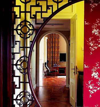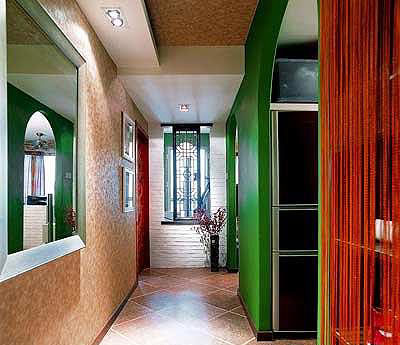 有的進(jìn)廳過道呈優(yōu)美的線型,而房門處對著一堵高大的墻,使整個過道黑而悶,一進(jìn)屋便覺壓抑。怎么辦?設(shè)計師可以作大膽的“破壞”,將過道正對的墻拆除,裝上一個隔斷以此來“鑿壁借光”。而隔斷應(yīng)具創(chuàng)意,比如從進(jìn)門處瞧,這隔斷疑是四扇玻璃格子門,或者是一個精美的壁龕。隔斷上的玻璃可以采用條紋玻璃、彩繪玻璃、磨砂玻璃等,橫豎條紋演繹出線性動感,美麗的彩繪畫面顯出精致的韻味、磨砂玻璃的朦朧映出細(xì)巧的心思。