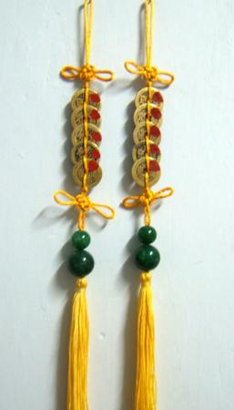 五帝錢是指清朝順治、康熙、雍正、乾隆、嘉慶五個皇帝的銅錢,可擋煞、避邪。把五帝錢放在門檻內,可擋尖角沖射、飛刃煞、槍煞、反弓煞、開口煞;放在身上可以避邪,不被邪靈騷擾,或用利是封包裝著,或用繩穿著掛在頸上,可增加自己的運氣,顏色可用喜用神的顏色。