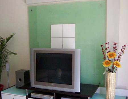 也有些消費者愛用烤漆玻璃做背景墻,對于光線不太好的房間還有增強采光的作用。