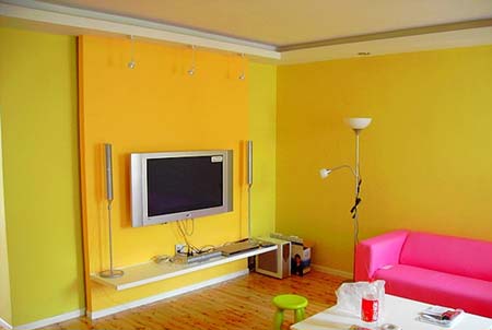 用油漆做電視背景墻要特別注意的是,在色彩的搭配上一定要注意與客廳其他局部協(xié)調(diào)。