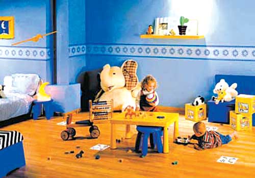 由于兒童的活動力強(qiáng),所以在兒童房的選材上,宜以柔軟。自然素材為主,如地毯、原木、壁布或塑料等。這些耐用、容易修復(fù)、非高價(jià)的材料,可營造舒適的睡臥環(huán)境,也令家長沒有安全上的憂慮。家具不妨選擇易移動、組合性高的,方便他們隨時(shí)重新調(diào)整空間,家具的顏色、圖案或小擺設(shè)的變化,則有助于增加孩子想象的空間。屋頂天花板的造型應(yīng)有變化,讓孩子多體會大自然的氣息,充分發(fā)揮他們的想象力。