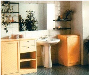 對(duì)小浴室而言,洗臉盆下的空間也值得利用。落地式的櫥柜不僅能將洗臉盆鑲嵌于內(nèi),而且可以借管線的重新配置,將它們隱藏起來,并創(chuàng)造出更井然有序的空間。