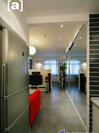 設(shè)計中主要考慮的因素就是空間的開放性。這一方面意味著建筑師必須考慮避免設(shè)置隔墻,同時必須將儲藏空間隱藏起來;另一方面,則意味著必須能使主人在單個空間中同時進(jìn)行多種活動。在這個Loft空間中,這種設(shè)計之所以能產(chǎn)生極佳的效果,因為對原有幾件家具的色彩處理和光線的過濾改造,不僅忠實于主人的委托(避免變更原有結(jié)構(gòu)),而且設(shè)法將空間所具有的潛在的抒情風(fēng)格釋放出來。
