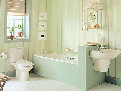 在浴缸周圍的墻壁上打一個(gè)七八厘米深的凹洞,再鋪上與墻壁相同的瓷磚,此洞可用來放洗浴用品等東西。這樣擴(kuò)大了使用空間,使用起來也方便、自如,看上去衛(wèi)生間井然有序。