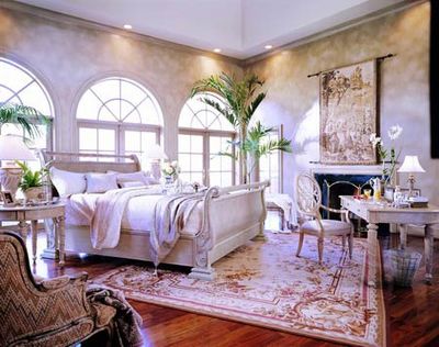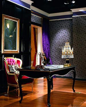 淺金顏色表現(xiàn)傳統(tǒng)的古典枝蔓花紋,壁紙的設計裝飾味道濃厚;大量的白色、米色、猩紅色讓居室布滿貴氣;閃亮面料的白色、金色條紋椅子是點睛之筆。