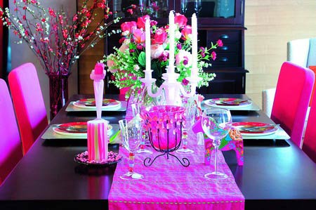 流行片段2 時尚道具 餐廳的優(yōu)雅有很多種,明亮知性款的打造法式也很簡單——粉色桌旗、粉色椅套就足以定下調子。燭臺、花瓶等造型可愛的東西是營造氛圍的高手,不用的時候單獨擺放也是優(yōu)良的飾品。