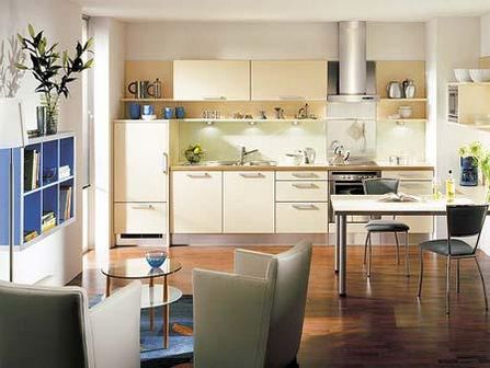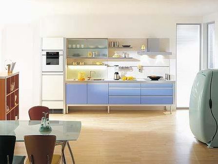 c、色彩其實也應歸于功能的范疇,例如灰、白淡色調(diào)能夠從視覺上擴張室內(nèi)空間,但不如鮮艷明快的色調(diào)提神。在朝北少窗的廚房里,跳躍的色彩能創(chuàng)造明朗的感覺。