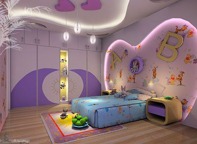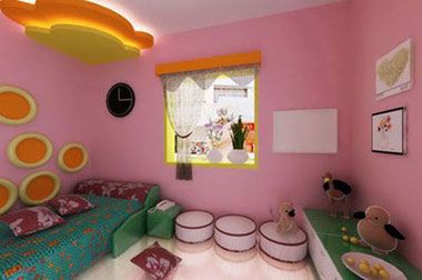 兒童房?jī)?nèi)部的顏色對(duì)小孩的心態(tài)也有很重要的影響,首先色澤要淡雅,不可用太刺眼的大紅大紫色,避免刺激小孩,也忌用黑色及純白色,而用淡藍(lán)色為底點(diǎn)綴一些草綠、明黃、粉紅的色澤則較好,能取得和諧的效果。