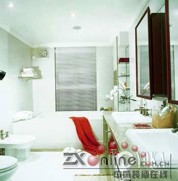 紅色是促使情緒起伏的顏色,如果置身其中,人難免激烈、亢奮而又容易疲憊。浴室的主人一定是富有**的,他用大量紅色來點綴家居中最本色的部分;但即使在浴室,也沒有放棄理性,冷靜的灰白恰如其分地約束了紅色的煥發(fā)。這里并不拒絕靈魂的燃燒,無形的節(jié)制卻又無處不在。白色令人聯(lián)想到無暇和純潔,浴室的主人在潛意識中追求的絕不僅僅是身體的一塵不染,他還傾向精神層面的自我凈化。