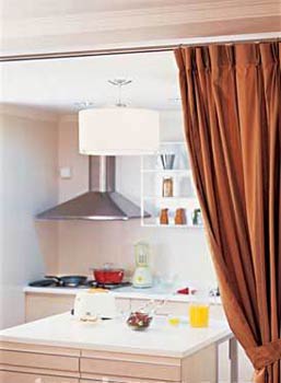 現(xiàn)代意義的整體廚房,打破了原有廚房概念的內(nèi)涵,已成為人們生活品質(zhì)的象征。銳利的色彩,和諧的布局,柔和的燈光,無論是二人世界、三口之家或是和父母在一起的大家庭,都能在廚房中享受到工作以外的輕松。倚著精巧的吧臺,喝著甜美的紅酒;或是全家人坐在餐桌周圍,共進晚餐,享受著家庭所獨有的溫馨。